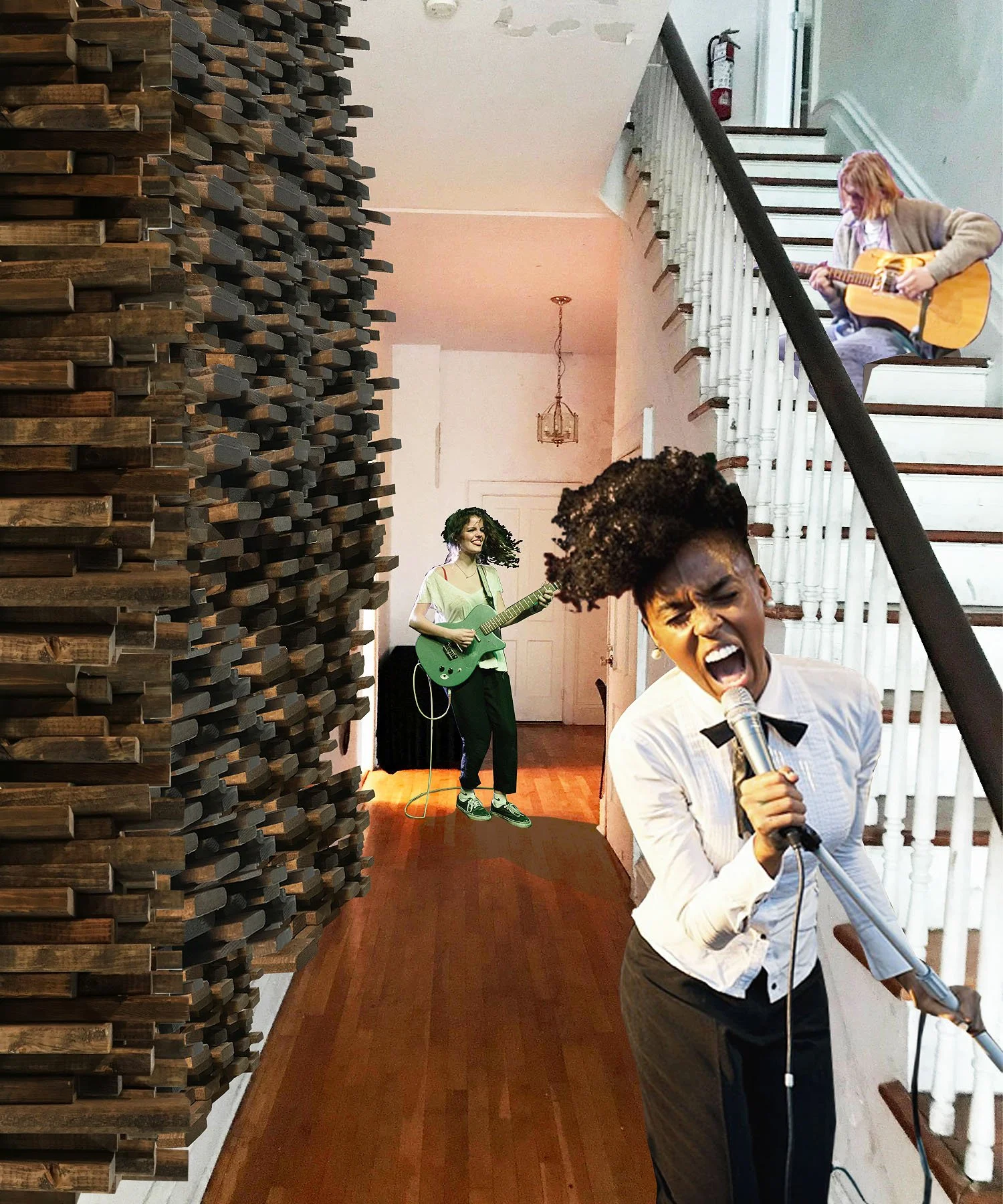Architecture can address diversity through its material. Building materials can control and monitor noise disturbance. Materials such as foam and carpet defuse sound and prevent echoes. Foam is often used in recording studios, practice spaces, and performance theaters due to its affordable cost. Foam is slow to degrade and can leach chemicals into the environment, resulting in harmful sources of water.